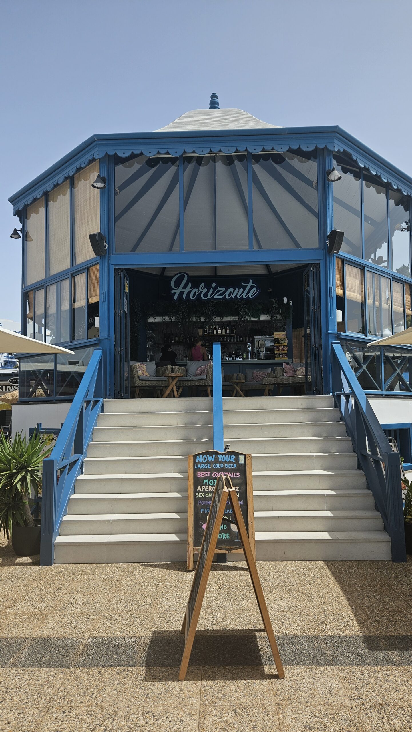 🪟 Terrace Views: Elevated seating with panoramic ocean views